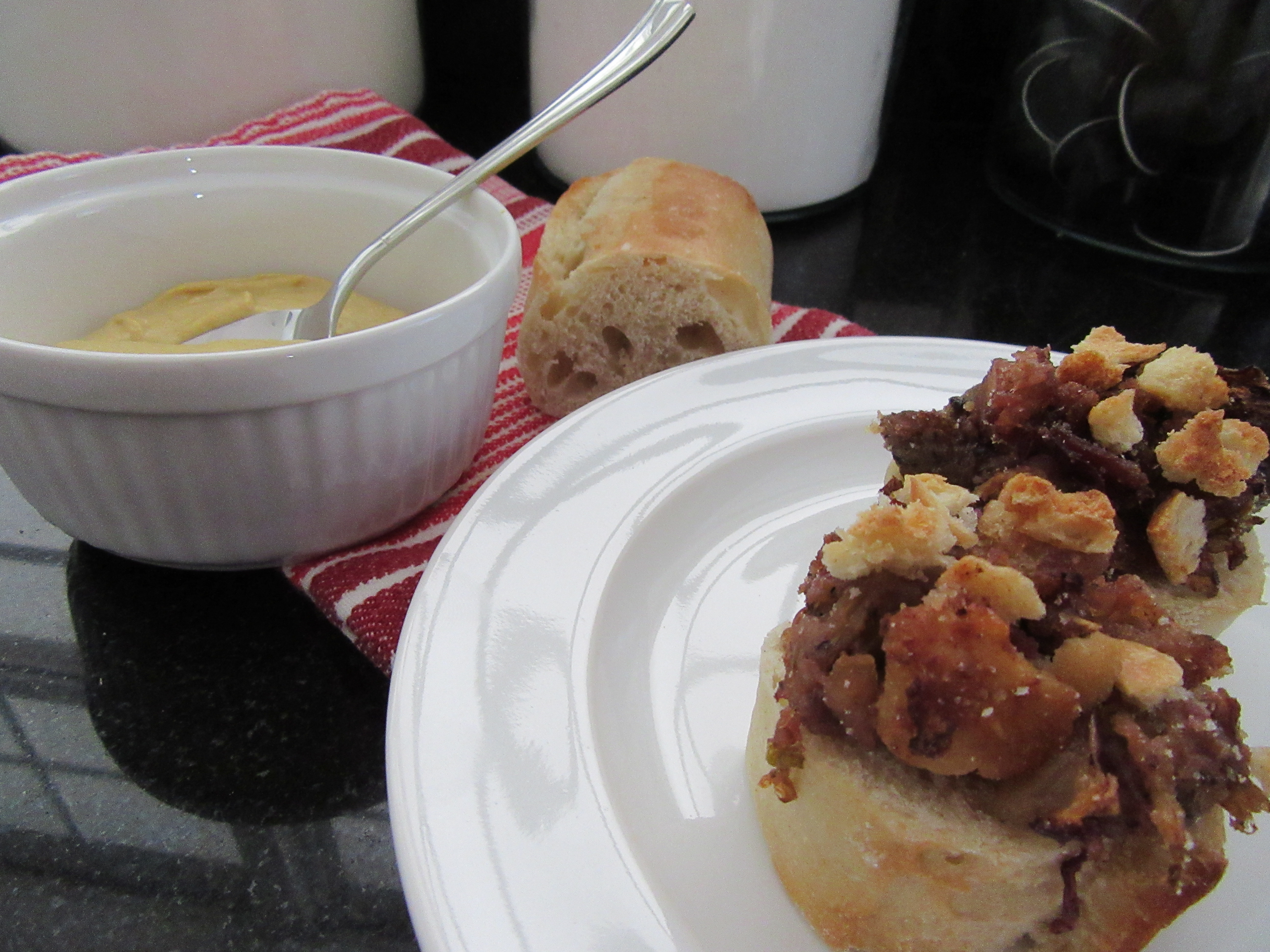 Lastly, because I was still un-trusting, I made a pot of rice to go with it. I couldn’t see how slathering this casserole on a piece of bread with some Dijon mustard was really going to work, but of course, it totally did. The rice ended up being completely unnecessary, but we ate it all anyway because it worked well together and we love to eat some carbs with our carbs. I think rice can be a nice substitute for the bread, if you want to change it up once in awhile.