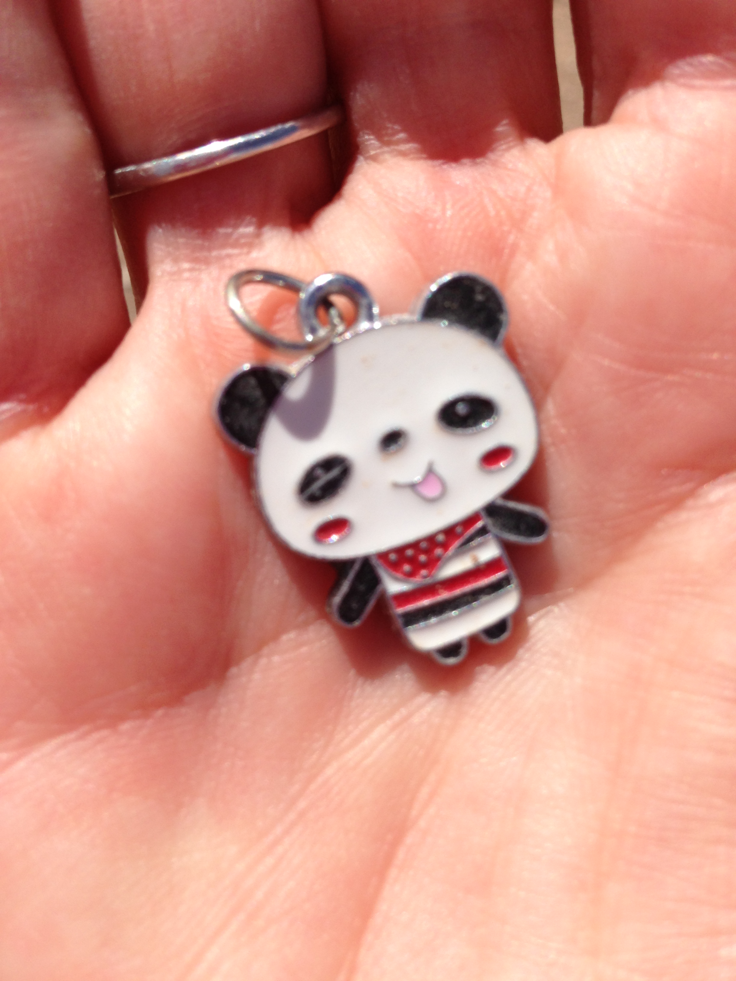 which seemed super creepy to me. I mean what kind of self-respecting panda wears a red and white polka dot scarf with a striped sweater?