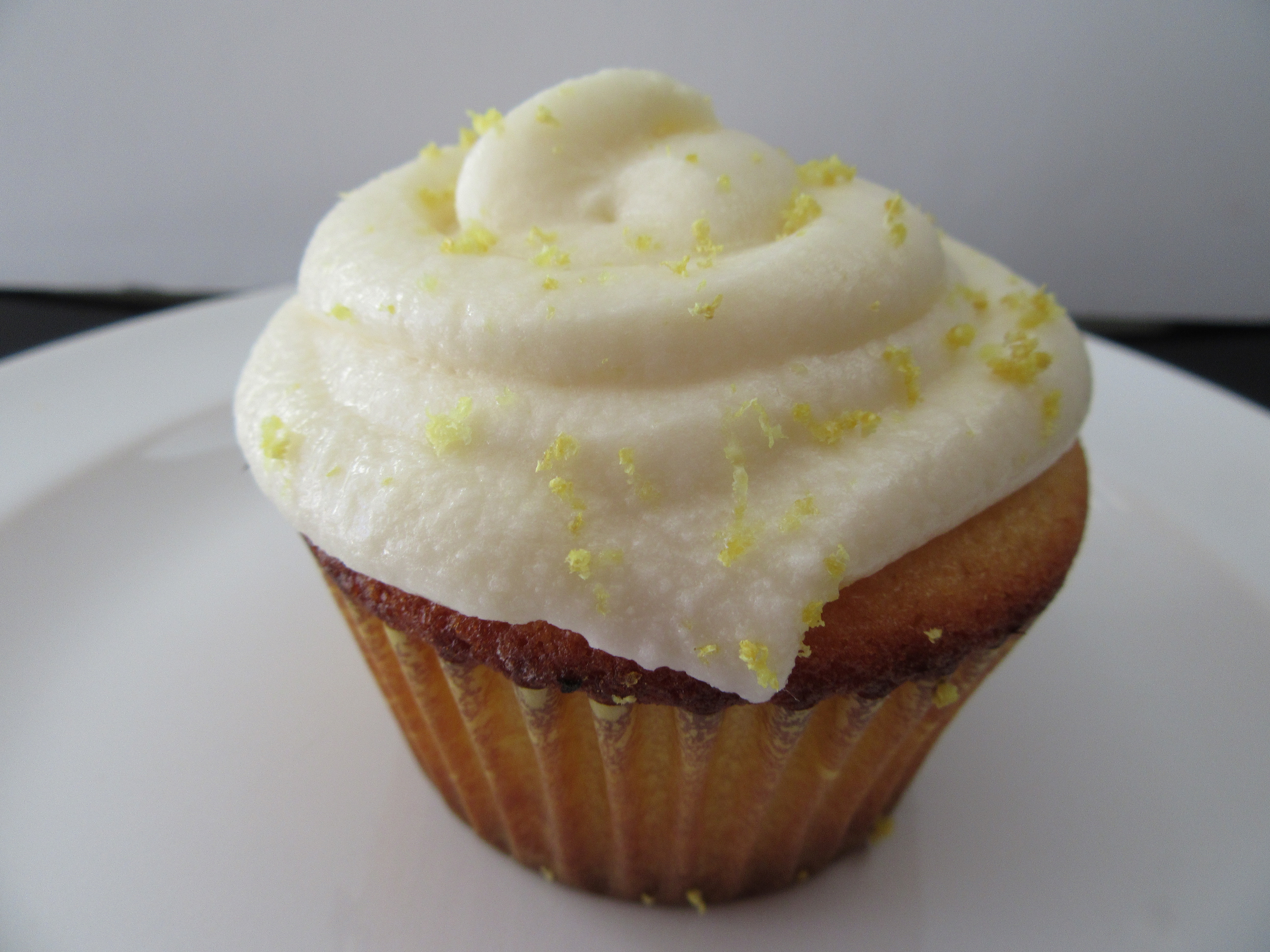 There was only one answer: Lemon Cupcakes. You see, if you are given a grand lemon, you can’t hide it in something complex where the other layers of the dish keep it from shining like the star it is. But you also can’t keep it too simple, like sucking on it with sugar (not that I’ve ever done that) because it will ruin your teeth and I don’t want to be responsible for that. You have to do something gloriously lemony, but tooth friendly.