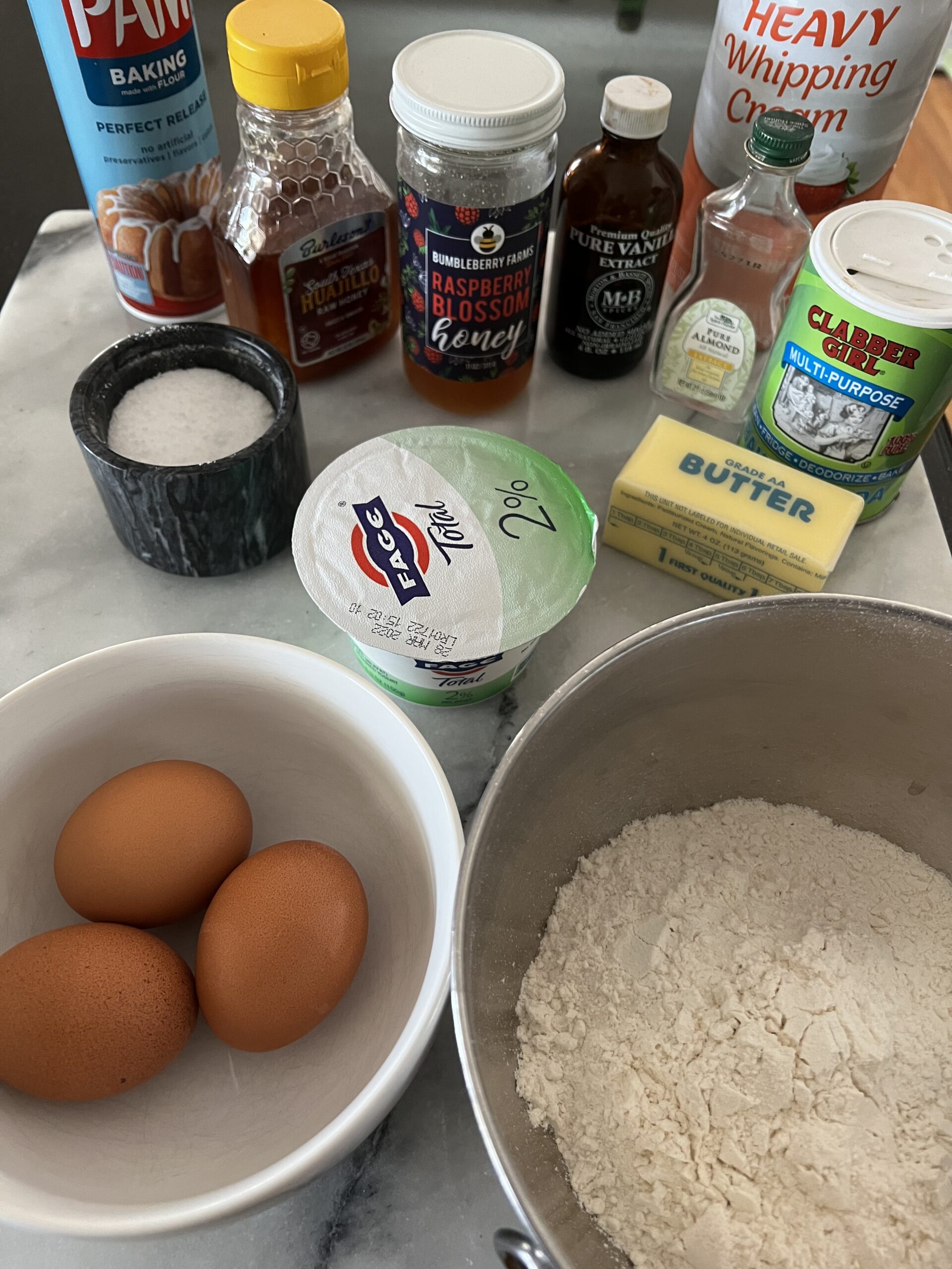 Today, I was in the mood for dessert, but not something too sweet. I remembered seeing someone somewhere make a “honey cake”, but I wasn’t really paying attention to how she did it. I was just got stuck on “cake” and “honey”. Ding ding ding. After some furious googling, and the realization that I did not have all the necessary ingredients for a “normal” honey cake, I decided to wing it. I figured I would end up with something at least edible, satisfying my cake craving, and that would be the end of it. I was making comfort food just for me, so it didn’t really matter if it was spectacular.