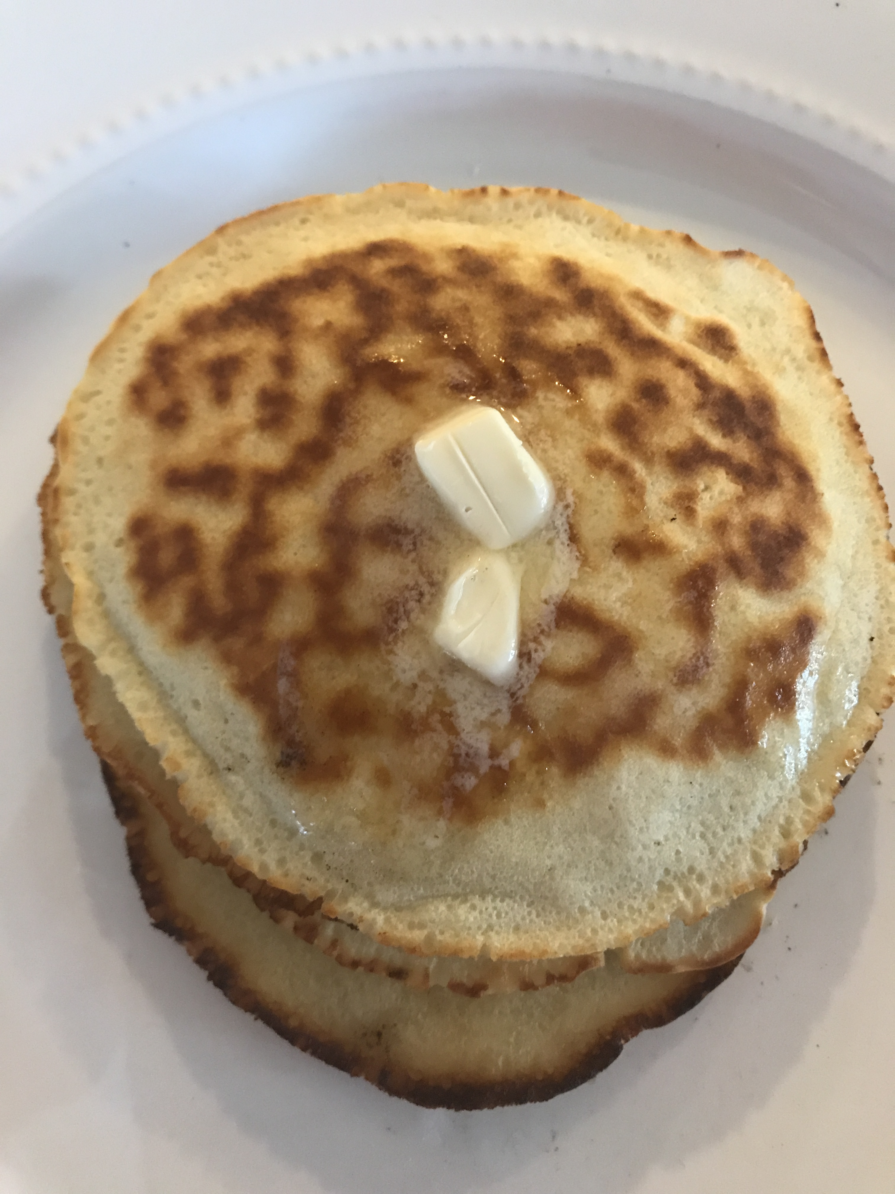 I think a pancake should be light, crisp-ish on the edges, slightly sweet and slightly salty. Like a food version of what I envision a sand dollar to be if it were edible. No syrup is required. Fruit would enhance it, and possibly, chocolate. No one would be mad if you added whipped cream. Butter on top is a must.