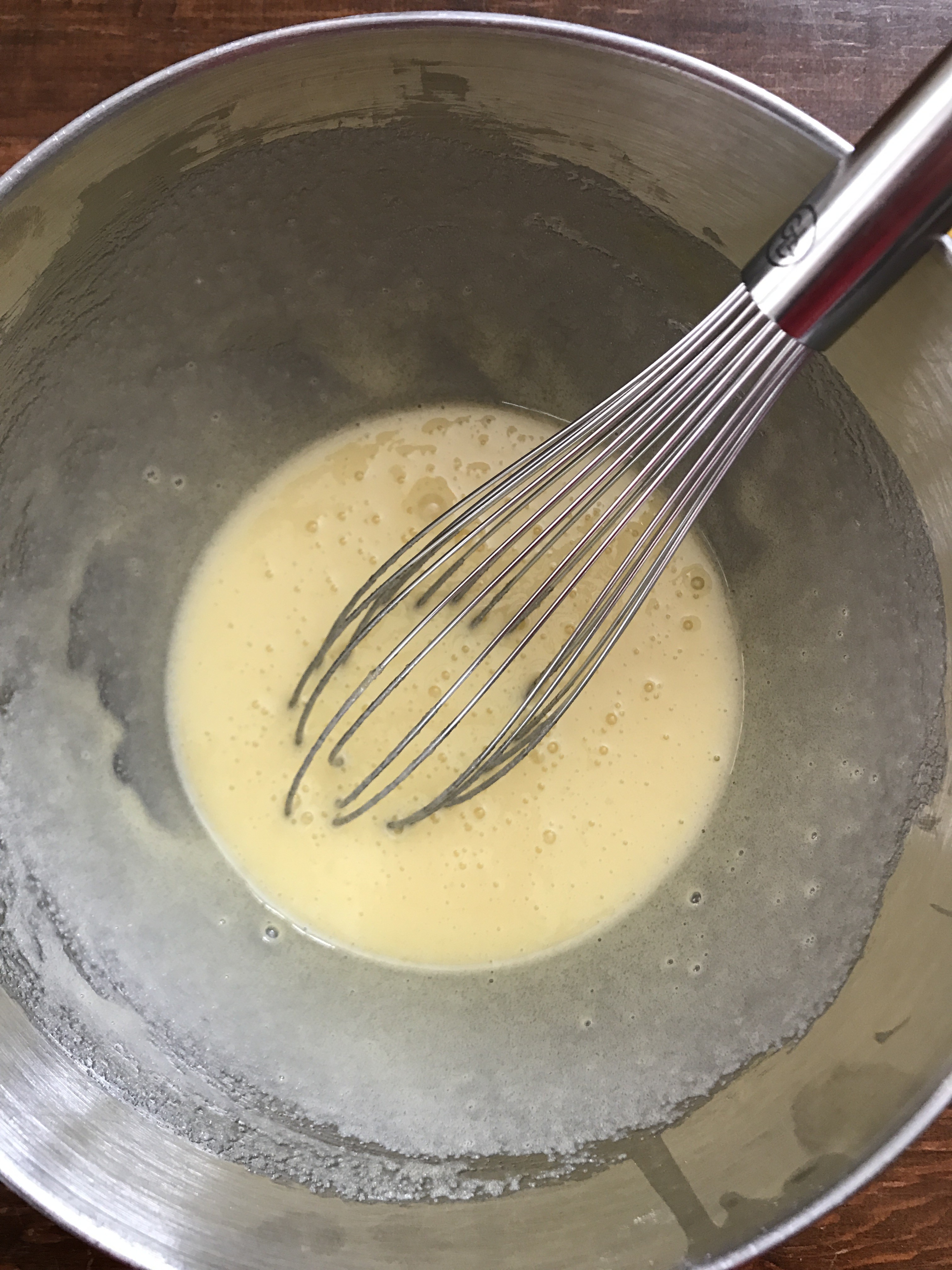 Beat (in another bowl or the rinsed-out bowl of your mixer) the remaining ingredients until light and fluffy, about 3 minutes. Pour over hot crust. *You can do this while your crust is baking!