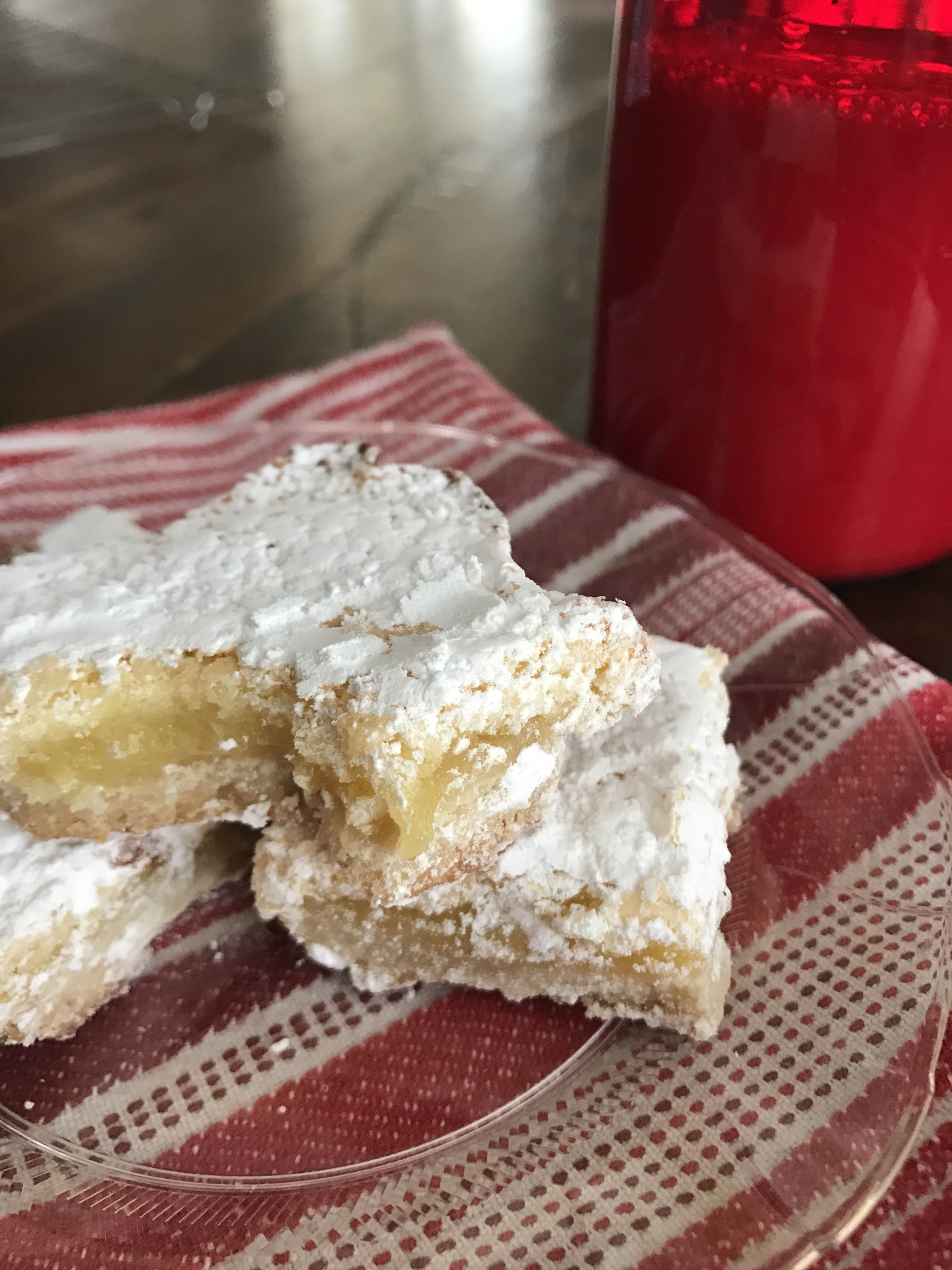 Lemon bars are very traditional – nothing too fancy schmancy about them – but that is why they work so well at this time of year. Who has time for a multistep lemon chiffon cake or the patience to deal with meringue when there are presents to buy, cards to address (which, if I’m honest, I haven’t done since 2006), and elves to put on shelves? Lemon bars let you get your tang on without interfering with all the chores joy of the holiday season.